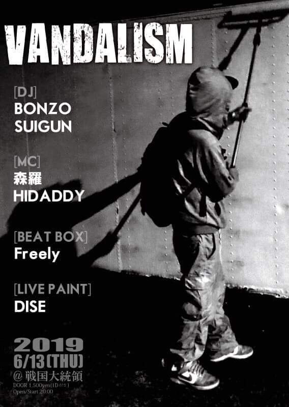 2019年6月13日(木) Tweet VANDALISM DJBONZOSUIGUN MC森羅ヒダディー BEAT BOXFreely LIVE PAINTDISE Open/Start 20:00DOOR¥1500(1D付き) 共有: クリックして X で共有 (新しいウィンドウで開きます) X Facebook で共有するにはクリックしてください (新しいウィンドウで開きます) Facebook いいね:いいね 読み込み中…