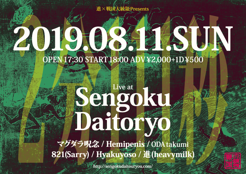 2019年8月11日(日) Tweet 進×戦国大統領Presents『2分11秒』 マグダラ呪念HemipemisODA takumi821(Sarry)Hyakuyoso進(heavymilk) OPEN 17:30/START 18:00ADV ¥2,000+1D ¥500共有: クリックして X で共有 (新しいウィンドウで開きます) X Facebook で共有するにはクリックしてください (新しいウィンドウで開きます) Facebook いいね:いいね 読み込み中…