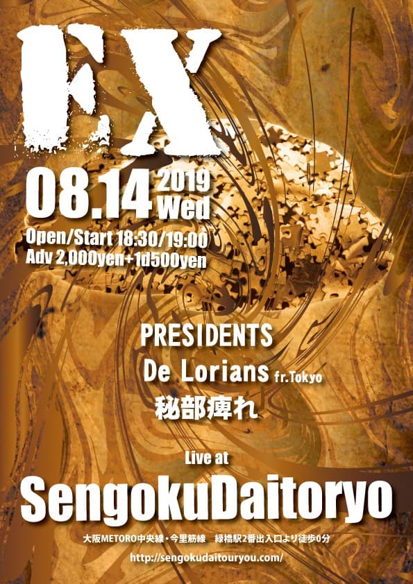 2019/8/14(水) Tweet 【 EX 】 PRESIDENTS De Lorians fr.TOKYO 秘部痺れ Open18:30 Start19:00 ADV¥2000 D別¥500 共有: クリックして X で共有 (新しいウィンドウで開きます) X Facebook で共有するにはクリックしてください (新しいウィンドウで開きます) Facebook いいね:いいね 読み込み中…